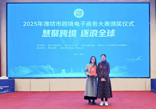 近日,2025年潍坊市跨境电子商务大赛圆满落幕。我院市场营销专业王悦、郭鲁艺、鲍浩辰、张亚婷四名同学组成的团队,凭借扎实的专业功底与良好的团队协作,荣获决赛三等奖。
